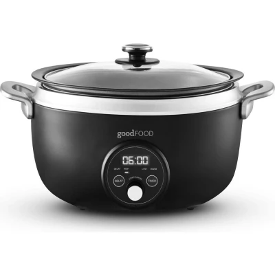 - Cook hearty meals for the whole family with this Good Food 3.5 litre slow cooker- The removable aluminium pot works on most hobs, perfect for searing your ingredients - The simple digital LED display makes using your cooker as easy as pie- With the delay function you can have your dinner ready and waiting for you after work - Choose from low, high, or keep warm settings to get your meals just right - Cleaning up's a doddle - just pop the pot and lid in the dishwasher