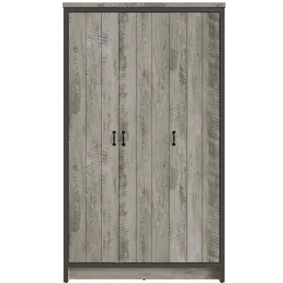 BOSTON 3 DOOR WARDROBE GREY by GFW. Designed to look the part and made to last Ñ Give your bedroom a makeover with the stylish Boston Bedroom Range. The industrial-inspired design of the Boston is a good match for a contemporary interior, offering a pared-back, reclaimed-effect look and feel that reflects the urban aesthetic. The three-door wardrobe offers both hanging and shelf space allowing for both shoes and folded clothes to be stored away easily. The chunky panels Ð including 30mm tops Ð are neatly framed by the contrasting casing and accessorised by black metal handles that enhance the urban aesthetic perfect for your bedroom!. Crafted from particle board Finish: Paper Foil Colour: Grey Includes clear assembly instructions Product Details Dimensions: 182cm (H) x 105.6cm (W) x 51.8cm (D) Material: Particle Board Finish: Paper Foil Colour: Grey Finish the look with pieces from our wardrobes. Explore more in bedroom furniture.