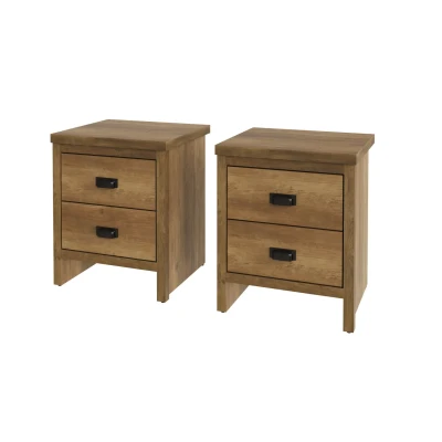 BOSTON 2 DRAWER BEDSIDE TABLE PAIR KNOTTY OAK by GFW. Designed to look the part and made to last Ñ Give your bedroom a makeover with the stylish Boston Bedroom Range. The industrial-inspired design of the Boston is a good match for a contemporary interior, offering a pared-back, reclaimed-effect look and feel that reflects the urban aesthetic. The bedside table provides effective storage with 2 neat storage drawers allowing you to keep the top panel neat and tidy.. Crafted from particle board Finish: Paper Foil Colour: Knotty Oak Includes clear assembly instructions Product Details Dimensions: 52.2cm (H) x 43cm (W) x 39.3cm (D) Material: Particle Board Finish: Paper Foil Colour: Knotty Oak Finish the look with pieces from our drawers. Explore more in bedroom furniture.