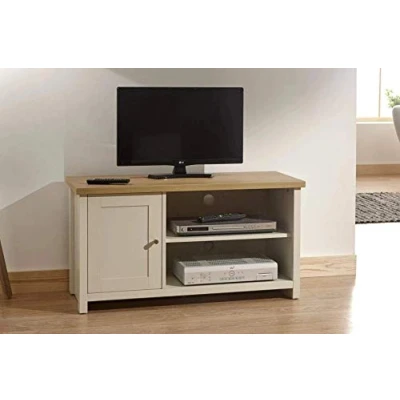 Bed KingsLANCASTER SMALL TV CABINET CREAM by GFW. Designed to look the part and made to last Ñ It may be the smallest TV cabinet in the Lancaster range but itÕs not short of features. A double shelf with rear cable entry and plenty of space for DVD/TV boxes plus a single cupboard to provide storage for manuals, remotes or DVDs make this a very practical piece of furniture. Designed with clean edges and available in a modern soft cream finish with contrasting oak veneer top Ð the Lancaster Small TV cabinet would work well in any living room both contemporary or traditional.. Crafted from particle board Finish: Paper Foil Colour: Cream, Oak Supports TVs up to 43Ó Includes clear assembly instructions Product Details Dimensions: 49.5cm (H) x 95cm (W) x 39.5cm (D) Material: Particle Board Finish: Paper Foil Colour: Cream Secondary Colour: Oak Max TV Size: 43" Assembly: Self-assembly, 12 steps Finish the look with pieces from our tv units. Explore more in living room furniture.