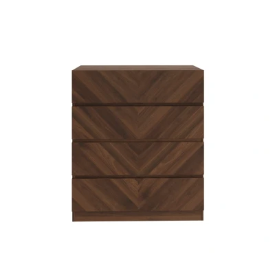 CATANIA 4 DRAWER CHEST ROYAL WALNUT by GFW. Designed to look the part and made to last Ñ Delivering both style and practicality, this spacious full-widthÊfour drawer chest features Herringbone inspired wood-grain design drawer fronts which make a true statement in any room setting. The handle free drawer systemÊopens smoothly on the metal runners Êproviding plenty of storage space for all your personal items. This chest of drawers arrives ready to assemble with instructions included.. Crafted from particle board Finish: Paper Foil Colour: Royal Walnut Includes clear assembly instructions Product Details Dimensions: 89cm (H) x 77cm (W) x 39.5cm (D) Material: Particle Board Finish: Paper Foil Colour: Royal Walnut Assembly: Self-assembly, 21 steps Finish the look with pieces from our drawers. Explore more in bedroom furniture.