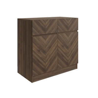 Bed KingsCATANIA COMPACT SIDEBOARD ROYAL WALNUT by GFW. Designed to look the part and made to last Ñ Are you looking for a sleek and modern storage solution for your home? Look no further than our stunning sideboard. Crafted with clean lines and a minimalist design, this piece features notches on the edges that serve as handles, eliminating the need for unsightly hardware. With two spacious drawers and two doors boasting herringbone inspired wood-grain finishes in Walnut, this sideboard provides ample storage space for your belongings while adding a touch of sophistication to your decor. Whether you're looking to declutter your living room, dining room, or bedroom, this versatile piece is sure to meet your needs. Don't miss out on the opportunity to elevate your home's style with our stunning sideboard.. Crafted from particle board Finish: Paper Foil Colour: Royal Walnut Includes clear assembly instructions Product Details Dimensions: 76cm (H) x 79cm (W) x 39.8cm (D) Material: Particle Board Finish: Paper Foil Colour: Royal Walnut Assembly: Self-assembly, 27 steps Finish the look with pieces from our bedroom furniture. Explore more in living room furniture.