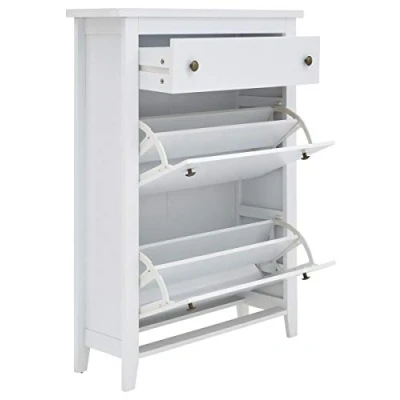 GFW Deluxe Two Tier Shoe Cabinet With 1 Drawer. Wooden Hallway Storage Organiser Cupboard Stores Up To 12 Shoes. Slim Entryway Cabinets For Home. Painted Finish (White)