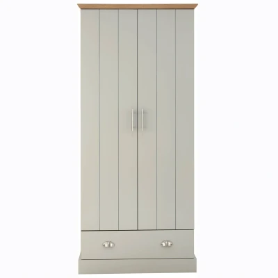 Bed KingsKENDAL 2 DOOR 1 DRAWER WARDROBE GREY by GFW. Designed to look the part and made to last Ñ Kendal brings a touch of country cottage chic to any bedroom Ð this two-door wardrobe is a perfect example. The robust frame is mounted on a proud plinth and fitted with a pair of planked-style doors, incorporating a handy drawer beneath. The piece is painted in soft grey and finished with a bevelled oak-effect top that adds a natural contrast. Accessorised with brushed steel handles, it makes an elegant choice.. Crafted from particle board, mdf Finish: Paper Foil Colour: Grey, Beaufort Oak Includes clear assembly instructions Product Details Dimensions: 180cm (H) x 78cm (W) x 58cm (D) Material: Particle Board, MDF Finish: Paper Foil Colour: Grey Secondary Colour: Beaufort Oak Finish the look with pieces from our wardrobes. Explore more in bedroom furniture.