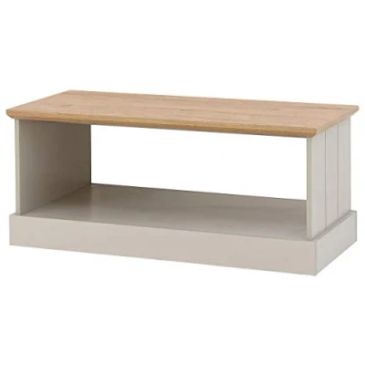 Bed KingsKENDAL COFFEE TABLE GREY by GFW. Designed to look the part and made to last Ñ Every living space needs a coffee table Ð and Kendal is the ideal choice for anyone whoÕd like to bank on a classic design that wonÕt date. The classic design will bring a touch of country-cottage style to the most modern of settings, effortlessly combining elegant grooved panels and base plinth in either slate blue or soft grey with a chunky oak-effect table-top to great effect. The open cuboid form means it can be placed anywhere in your living room and offers two surfaces for drinks, TV guides, books, games Ð or whatever you like. Easy to clean with just a quick wipe over Ð no need for waxing and polishing!. Crafted from particle board Finish: Paper Foil Colour: Grey, Oak Includes clear assembly instructions Product Details Dimensions: 43cm (H) x 100cm (W) x 47cm (D) Material: Particle Board Finish: Paper Foil Colour: Grey Secondary Colour: Oak Assembly: Self-assembly, 12 steps Finish the look with pieces from our bedroom furniture. Explore more in living room furniture.