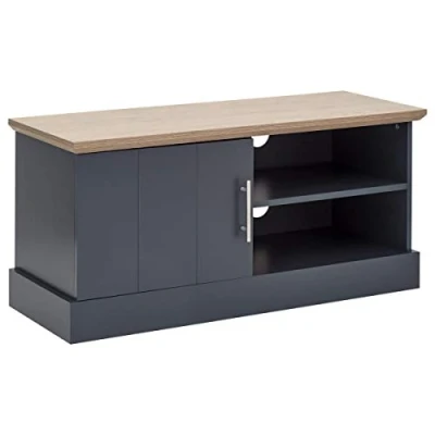 STORAGE CUPBOARD: Anyone who has a TV is familiar with the ongoing problem of how to house all the gaming, media & entertainment boxes without dominating the living space. This Kendal Large TV Stand for living room is perfect to house all the media accessories in the easy open storage cabinets. OPEN SHELVING: The Kendal TV Sideboard Unit features open shelving for TV boxes or gaming equipment, with rear cable entry for the wires, it helps keep your living room clutter free and tidy! Use the shelf to house your multimedia units! DESIGN: This small unit puts the chic into country, combining grooved panels, shelves and plinth in either slate blue or cool grey with a substantial oak-effect top that’s ideal for a larger TV. DIMENSIONS: With assembled dimensions of H-48cm x W-100cm x D-39cm, our modern television stands are perfect for any living room. Full assembly required, assembled weight of 21kg. GFW: Find a Living Room range to match your personality. At GFW we understand every person and every Living Room is unique. Our Living Room furniture collections are developed to provide aspirational designs while also being designed to maximise your available space. Keep up with the changing demands of your home with our smart storage furniture.