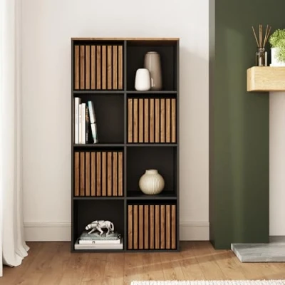 GFW Kube 2x4 Storage Sideboard Cabinet Shelf & Drawers Bedroom Living Black/Walnut