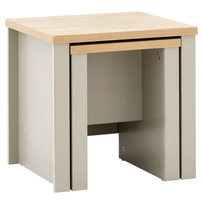 LANCASTER NESTING TABLES GREY by GFW. Designed to look the part and made to last Ñ A classic nest of tables reinvented for a new generation. The Lancaster range is popular because the smart combination of painted frame and oak-effect top makes it a good fit for both period and contemporary interiors. Take this versatile duo Ð a pair of handy occasional tables that offer plenty of options when guests arrive but can be stacked neatly together to save space when not in use. A choice of grey, cream or slate blue finishes to suit most colour schemes. A great addition to any living space.. Crafted from particle board Finish: Paper Foil Colour: Grey, Oak Includes clear assembly instructions Product Details Dimensions: 49cm (H) x 50cm (W) x 44.5cm (D) Material: Particle Board Finish: Paper Foil Colour: Grey Secondary Colour: Oak Assembly: Self-assembly, 16 steps Finish the look with pieces from our bedroom furniture. Explore more in living room furniture.