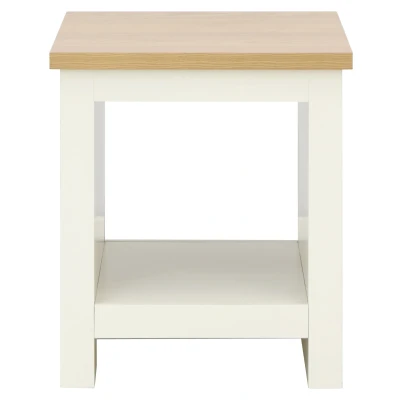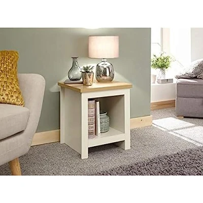 Bed KingsLANCASTER SIDE TABLE WITH SHELF CREAM by GFW. Designed to look the part and made to last Ñ This charming side table will bring contemporary styling to any home. Featuring a useful storage shelf underneath. Its matte grey or cream finish and oak veneered top matches perfectly with the rest of the Lancaster range and would be at home in any living or dining room.. Crafted from particle board Finish: Paper Foil Colour: Cream, Oak Includes clear assembly instructions Product Details Dimensions: 50.5cm (H) x 45cm (W) x 45cm (D) Material: Particle Board Finish: Paper Foil Colour: Cream Secondary Colour: Oak Finish the look with pieces from our bedside cabinets. Explore more in bedroom furniture.