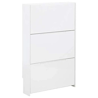 GFW Narrow High Gloss 3 Tier Stores Up to 9, Wooden Slim Shoe Organiser Cabinets for Home Entryway, Hall & Bedroom, White, H 112cm x W 72cm D 17cm