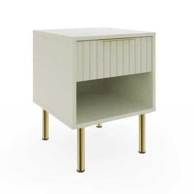 NERVATA LAMP TABLE IVORY by GFW. Designed to look the part and made to last. Experience the perfect blend of practicality and style with our Nervata Lamp Table. Its exquisite wooden panels, adorned with realistic wood grain texture, will elevate the ambiance of any room. The seamless integration of delicate handles adds a touch of technical brilliance, while the sleek oak and black design complements its surroundings. In the Nervata Range, every piece is thoughtfully designed to offer a unique and exceptional experience. Whether it's the coffee table, lamp table, sideboard, or TV unit, each one represents the perfect blend of elegance and functionality, allowing you to create a home that is truly a masterpiece.. Crafted from particle board, MDF Finish: Paper Foil Colour: Ivory, Gold Includes clear assembly instructions Product Details Dimensions: 49.8cm (H) x 39cm (W) x 39cm (D) Material: Particle Board, MDF Finish: Paper Foil Colour: Ivory Secondary Colour: Gold Assembly: Self-assembly, 12 steps Finish the look with pieces from our bedside cabinets. Explore more in bedroom furniture.