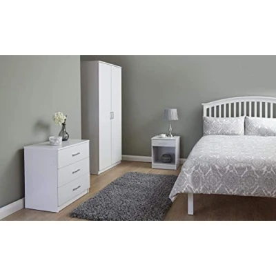 IN THE SET: It's easy to create a bedroom that showcases effortless modern chic, with this stylish 3-piece furnishing pack. With a sleek contemporary look and feel that’s just right for a modern interior, the simple, no-fuss design features clean lines comprising of a two-door wardrobe, four-drawer chest and bedside lamp table. DESIGN: Each piece is finished in Grey, Oak and White finishes, with stylish satin handles to finish, to match most décors. A well-thought-out mix of hanging, drawer and flat shelf storage for clothes, accessories, shoes and more! STORAGE : The set features a chest of drawers, perfect to house your clothing and accessories. The set also includes a bed side table for easy access storage in the bed room. The wardrobe includes storage shelving on top of the clothing hanging rail. DIMENSIONS: Wardrobe assembled dimensions of: (D)465mm x (W)790mm x (H)1650mm, Nightstand: (D)390mm x (W)400mm x (H)480mm, Dimensions: Chest: (D)400mm x (W)600mm x (H)620mm. GFW: From complete bedroom furniture sets to individual lines our Bedroom collections cover on-trend pastels through to vibrant pops of colour. Bring your vision to life with GFW modern bedroom collections.