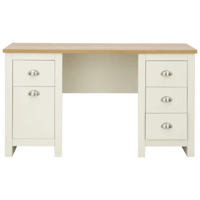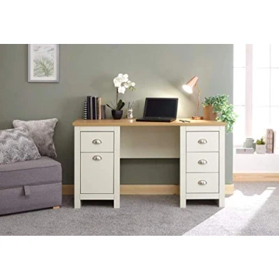 LANCASTER STUDY DESK CREAM by GFW. Designed to look the part and made to last Ñ The Lancaster Study Desk combines a spacious work surface with four drawers and a cupboard, all fitted with our signature satin-silver Lancaster pulls. Finished in soft cream with an oak veneer top, it offers stylish and practical storage for any home office. Crafted from particle board Finish: Paper Foil Colour: Cream, Oak Includes clear assembly instructions Product Details Dimensions: 75cm (H) x 135cm (W) x 45cm (D) Material: Particle Board Finish: Paper Foil Colour: Cream Secondary Colour: Oak Finish the look with pieces from our desks. Explore more in home office.