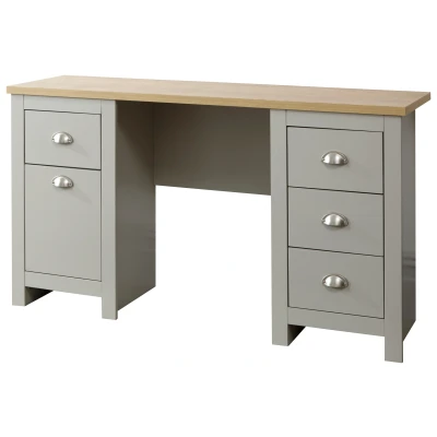 LANCASTER STUDY DESK GREY by GFW. Designed to look the part and made to last Ñ Our Lancaster Study Desk features a convenient cupboard and 4 large storage drawers in addition to a useful working area. It is available in a modern soft grey finish with contrasting oak veneer top, the drawers and cupboard on are fitted with our signature ÔLancasterÕ satin silver drawer pulls.. Crafted from particle board Finish: Paper Foil Colour: Grey, Oak Includes clear assembly instructions Product Details Dimensions: 75cm (H) x 135cm (W) x 45cm (D) Material: Particle Board Finish: Paper Foil Colour: Grey Secondary Colour: Oak Finish the look with pieces from our desks. Explore more in home office.