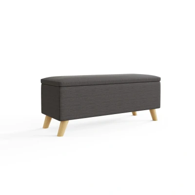GFW The Furniture Warehouse Secreto Fabric Ottoman Lift Up Storage Box & Bench, Oak Feet Grey or Charcoal#Charocal