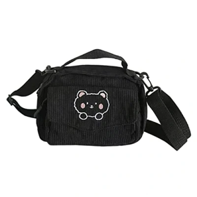 GGOOB Kawaii Purse Crossbody Bag Wallet Corduroy Purse, Black, One Size