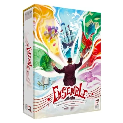 Ensemble is a cooperative game in which you will have to synchronize your choices without being able to communicate: only if you form a close-knit group can you win by passing level 9, otherwise you will all be defeated! All players must vote, without communicating, one of the visible cards that they feel best matches a card in the middle of the table. Communication is allowed only after all player votes have been revealed and if all players have voted the same way (with a small tolerance varying depending on the number of players), the group moves to the next level. Otherwise, they lose a life. The goal of the game is to win Level 9, and once you win the game for the first time, the first scenario deck (of three) is unlocked, with new rules and cards available for future games., Manufacturer: Ghenos Games