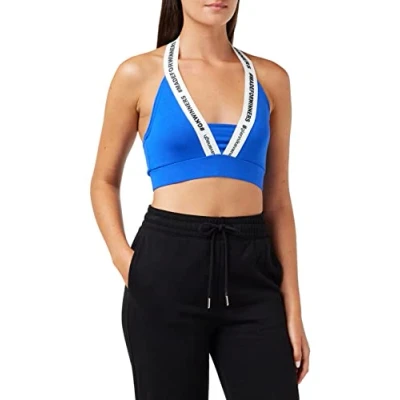 Slim fit, plain style, stretch cotton jersey, GK hashtag elastic, halterneck, sleeveless style, adjustable hem.