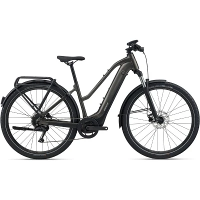 The Explore E+ 4 Stagger is designed to make everyday rides easier and longer adventures more accessible. A comfortable step-through frame, wide tyres and smooth motor support deliver confidence on roads, cycle paths and gravel tracks.Key Features:Frame: ALUXX aluminium stagger frame with relaxed geometry and integrated batteryFront suspension: SR Suntour XCM34 fork with 100mm travelRear suspension: Hardtail design for efficiency and simplicityDrivetrain: Shimano CUES 9-speed drivetrain with durable LINKGLIDE componentsBrakes: Tektro HD-M280 hydraulic disc brakes with 180mm rotorsWheels: 700c wheels with wide Crosscut Gravel 2 57c tyresStandout feature: Integrated rack, lighting and kickstand for everyday practicalityFinance: Available with 0% APR financeDrive Information:Motor: Giant SyncDrive Sport 2 motor delivering up to 75Nm of torqueBattery: Giant EnergyPak Smart 500Wh integrated batteryUser Interface: Giant RideControl Dash 2 full-colour displayBuilt to expand what’s possible on every ride, the Explore E+ 4 Stagger balances comfort, control and capability. The ALUXX aluminium frame uses a step-through design that makes mounting easy, while the elevated chainstay layout helps keep the drivetrain quieter and lower maintenance. Integrated mounts for a kickstand and rear carrier make it practical for day-to-day riding.The SR Suntour suspension fork offers 100mm of travel to smooth out rough roads, broken tarmac and gravel paths, helping reduce fatigue on longer rides. Wide 700x57c tyres add stability and grip, giving you the confidence to leave smooth roads behind without sacrificing comfort.Giant’s SyncDrive Sport 2 motor provides natural-feeling assistance that responds smoothly to your pedalling, making hills and headwinds easier to manage. The 500Wh EnergyPak battery offers a useful balance of range and weight for commuting and weekend rides alike. Shimano’s CUES 9-speed drivetrain is designed for durability under e-bike loads, delivering dependable shifting with minimal fuss.With integrated lighting, a sturdy rear rack and a clear RideControl Dash 2 display, the Explore E+ 4 Stagger is a well-rounded e-bike for riders who want comfort, confidence and the freedom to explore further, whatever route they choose.