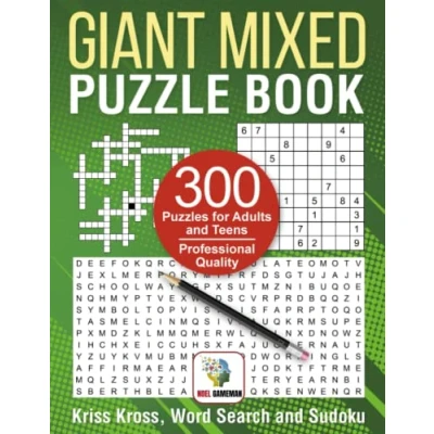 Giant Mixed Puzzle Book: Kriss Kross, Word Search and Sudoku. 300 Puzzles for Adults Teens. Professional Quality (Mixed Sudoku, Search)