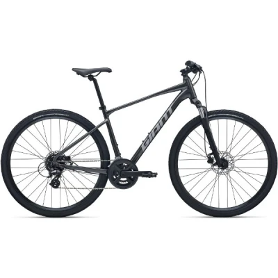 The Giant Roam 4 is a versatile flat-bar bike designed for mixed terrain, combining ALUXX aluminium construction, a 63mm suspension fork, hydraulic disc brakes and a wide-range 2x8 drivetrain to keep your rides smooth and controlled.Key Features:ALUXX aluminium frame with updated flat-bar geometrySR Suntour NEX fork with 63mm travelShimano Altus 2x8 drivetrainTektro TKD-143 hydraulic disc brakesGiant double-wall alloy wheels700x42c CrossCut tyres with anti-puncture protectionD-Fuse seatpost for added comfortAvailable with 0% APR financeThe Roam 4 is built for riders who want one bike to handle town rides, canal paths and light off-road exploring. Its ALUXX-grade aluminium frame uses single-butted 6061 tubing for a balance of strength and low weight, keeping the bike easy to handle on climbs and steady across rougher ground. The updated flat-bar geometry places you in a position that balances efficiency with stability, helping you stay confident whether you’re navigating traffic or heading onto gravel tracks.Comfort is a key part of the Roam’s design. The D-Fuse seatpost features a distinctive D-shaped profile that allows controlled flex to reduce vibration from uneven surfaces. Paired with the SR Suntour NEX fork’s 63mm of travel, it helps smooth bumps and potholes so your ride feels calmer and more predictable. Giant’s EasyRide tubeless-ready approach means the CrossCut 700x42c tyres can run at lower pressures when set up tubeless, adding grip and further reducing the risk of punctures.Shimano’s Altus 2x8 drivetrain provides dependable shifting with enough range for everyday climbs and mixed terrain. The 30/46 chainset and 11-34 cassette are well matched for steady spinning on longer rides. Hydraulic disc brakes from Tektro give reliable stopping power in different weather, helping you stay in control on damp roads or loose surfaces.Giant double-wall alloy rims, stainless-steel spokes and 32h hubs create a durable wheel build suited to varied riding. Practical touches include integrated mounts for a rear rack, making it easy to carry luggage for commuting or touring.Comfortable, adaptable and easy to ride, the Giant Roam 4 offers a smooth and controlled feel for riders exploring a mix of roads and paths in all conditions.