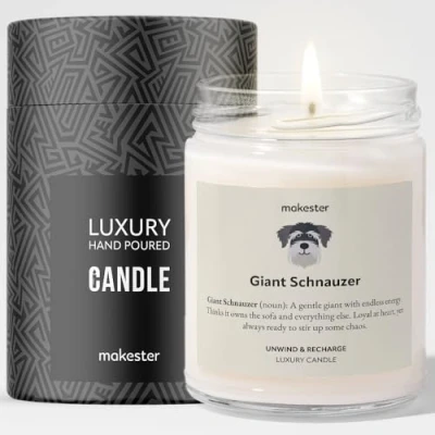 Giant Schnauzer Candle Over 100+ Breeds Luxury Soy Wax Vanilla, Jasmine, Sugared Almond Gift Makester