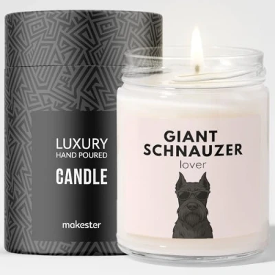 Giant Schnauzer Gifts Luxury Soy Wax Candle Vanilla, Jasmine, Sugared Almond Dogs in Shades Makester