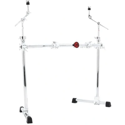 Two-post front curved rack 30" vertical legs, 46" curved horizontal bar, two cymbal boom arms Can hold up to three rack toms and has the ability to expand to accommodate larger configurations Minimizes footprint and set-up time Can be used as a front rack over the bass drum, or as a side rack