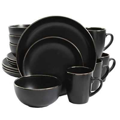 WHAT’S IN THE BOX: Service for 4 that includes 4 of each of the following: Service for 4 that includes 4 of each of the following: 10.5” Dinner Plates, 8” Dessert Plates, 6” (26.5 OZ) Bowls, and 12 OZ Mugs CARE INSTRUCTIONS: beautiful dishes that are also microwave and dishwasher safe STONEWARE/MATTE GLAZE: a smooth, flat finish dipped in beautiful solid color creates a sleek and artistic addition to the table. The high firing temperature, thick build, and mix of all-natural clays, makes stoneware an incredibly durable material. STYLISH DESIGN: a modern simplicity with a faux gold trim along the rim brings style into every kitchen. These plates will make a statement. The coupe-shaped edges allow for a stackable and space saving benefit. FAMILY OWNED: Gibson is an industry-leading producer of tabletop and housewares products based in Los Angeles, California. Family-owned for over 40 years, we’ve developed a family of brands that thrive off relentless commitment to style, innovation, and value for our consumers around the world