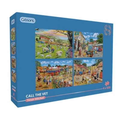 Gibsons Call the Vet 4 x 500 Piece Jigsaw Puzzle Multi Box Set of Puzzles Sustainable for Adults Teens Premium 100% Recycled Board Great Gift Games