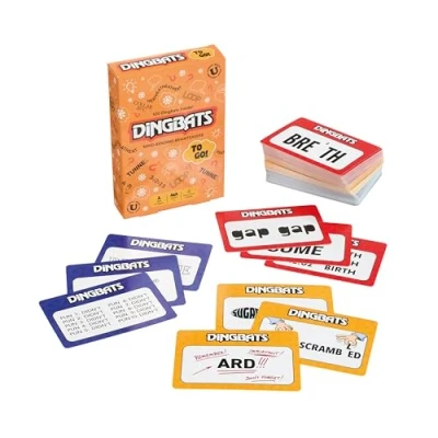 GAME CONTENTS: Contains 100 brand-new mind-bending Dingbats puzzles in a compact orange box, perfect for travel and on-the-go entertainment GAMEPLAY: Players solve visual word puzzles by identifying hidden phrases, names, or sayings, encouraging creative and lateral thinking PERFECT FOR TRAVEL: Compact size of 13 x 9 x 2.5 cm makes it ideal for road trips, holidays, or daily commutes PLAYER DETAILS: Suitable for ages 10 and above, can be played solo or with multiple players, with each game session lasting about 25 minutes PUZZLE VARIETY: Features 100 unique brain teasers that challenge players to think outside the box and see beyond the obvious. Inventor Credit: Paul Sellers SUSTAINABLE & AWARD-WINNING: As a B Corp certified company and winner of the King’s Award for Sustainable Development, we are proud to combine sustainability with over 100 years of family-run puzzling and gaming heritage., Manufacturer: Gibsons