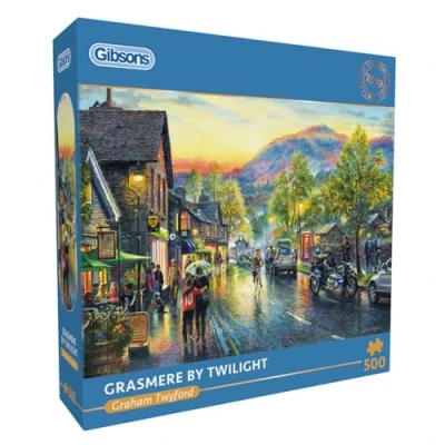 DESIGN AND THEME: Escape to the country, and the beauty of the Lake District with Grasmere by Twilight, a delightful 500-piece puzzle featuring the artwork of Graham Twyford. As evening settles over the peaceful cobbled streets, the bikers are ready to stop for a brew in Arundale’s café. QUALITY AND CRAFTSMANSHIP: Made from the thickest 100% recycled puzzle board with precisely cut, interlocking pieces and a smooth, non-glare finish. Completed puzzle size: 48 x 34 cm (19 x 13 in). Box size: 20.5 x 20.5 x 5 cm (8 x 8 x 2 in). UK/EU production. ENJOYMENT AND BENEFITS: Immerse yourself in a vibrant 500-piece jigsaw puzzle that captures the timeless charm of the Lake District. Perfect for adults and families who enjoy travel, countryside scenery, and mindful puzzling. Includes a handy reference poster to guide your journey. GIFTING AND PRESENTATION: A thoughtful gift for puzzle fans and those who dream of an escape to the country. Elegantly packaged in a compact illustrated box, it’s perfect for birthdays, holidays, or cozy creative evenings at home, and makes a charming keepsake for collectors or a mindful activity to share with loved ones. SUSTAINABLE & AWARD WINNING: Gibsons is a certified B Corp and proud recipient of The King’s Award for Sustainable Development, recognising excellence in ethical and environmentally responsible production., Manufacturer: Gibsons