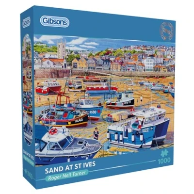 DESIGN AND THEME: It’s a golden morning in St Ives, and the fishing boats wait patiently for the tide to return. Nets ready, gulls circling, and the promise of a good catch in the Cornish breeze. This 1000-piece jigsaw puzzle has been painted by the talented artist Roger Neil Turner. QUALITY AND CRAFTSMANSHIP: Made from the thickest 100% recycled puzzle board with precision‑cut, interlocking pieces and a smooth, non‑glare finish. Packed in paper bags to reduce single-use plastic. Completed puzzle size: 68 x 49 cm (27 x 19 in). Box size: 24 x 24 x 6 cm (9.5 x 9.5 x 2.5 in). UK/EU production. ENJOYMENT AND BENEFITS: Immerse yourself in a tranquil 1000‑piece puzzle journey capturing the charm of Cornwall’s St Ives on a peaceful morning, complete with colourful fishing boats gently resting in the harbour. Perfect for harbour enthusiasts and art lovers alike, this mindful puzzling experience includes a helpful reference poster to guide and inspire your progress. GIFTING AND PRESENTATION: Presented in a beautifully designed box, this thoughtful gift for adults and families offers relaxation, creativity, and mindful enjoyment together. SUSTAINABLE & AWARD WINNING: Gibsons is a certified B Corp and proud recipient of The King’s Award for Sustainable Development, recognising excellence in ethical and environmentally responsible production., Manufacturer: Gibsons