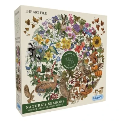 Gibsons The Art File Nature’s Seasons 500 Piece Circular Jigsaw Puzzle for Adults Beautiful Plants & Animals Nature Artwork Premium Sustainable Made in UK/EU