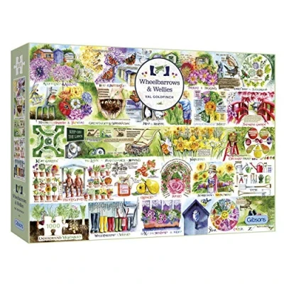 Gibsons Wheelbarrows and Wellies 1000 Piece Jigsaw Puzzle for Adults by Val Goldfinch Nostalgic Garden Nature Scene Thickest 100% Recycled Board Sustainable Great Gift Games
