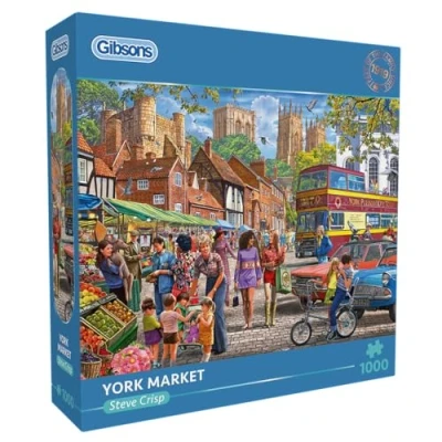 Gibsons York Market 1000 Piece Jigsaw Puzzle Nostalgic Beautiful Colourful Artwork Sustainable for Adults Teens Premium 100% Recycled Board Great Gift Games