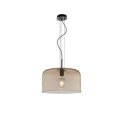 The GIBUS Cylindrical Pendant Ceiling Light in amber adds a touch of sophistication to your décor. With its sleek glass design, this pendant creates an inviting atmosphere with a modern flair.