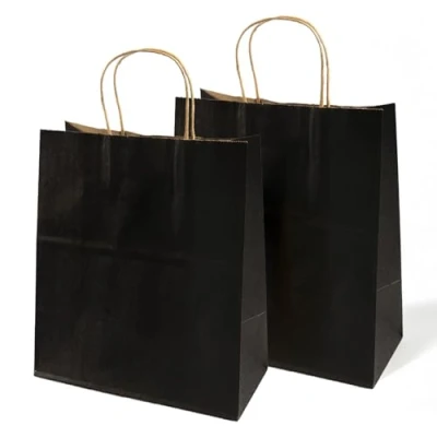 Sleek Aesthetic Friendly Material: Made from recycled kraft paper, these black gift bags combine stylish matte-black visuals with environmental sustainability. The premium paper not only reduces single-use plastic waste but also adds a touch of sophistication, making them perfect for gifting or boutique branding. Sturdy Structure for Heavy Loads: Featuring well-structured twisted paper handles and a reinforced sturdy bottom, these paper bags offer reliable durability. They easily support heavy items without tearing, ensuring your purchases or gifts stay secure during transport—ideal for groceries, books, or little items. Versatile for Every Occasion: With dimensions of 30x23x12cm , these bags suit countless scenarios: use as shopping bags for supermarkets/farmers’ markets, gift bags for birthdays/weddings, or retail bags for boutique merchandise. Their timeless black design fits both casual and formal settings. Reusable Quality: Crafted from thick, tear-resistant kraft paper, these bags are built to last through repeated use. Unlike disposable alternatives, they maintain shape and strength after multiple trips, offering a long-lasting solution that saves you money and reduces waste over time. Complete Value Satisfaction Guarantee: Each purchase includes 18 pack premium black kraft paper bags ready for immediate use. If you’re not completely satisfied with the design, or functionality, contact us for a hassle-free replacement or refund—we prioritize your satisfaction.