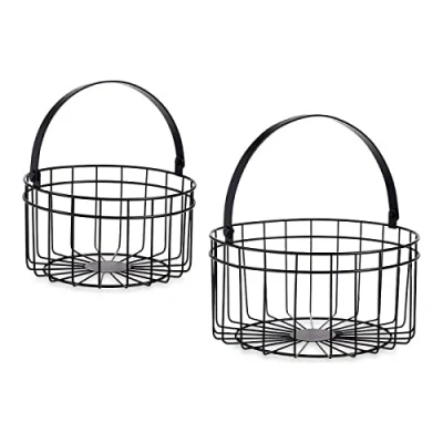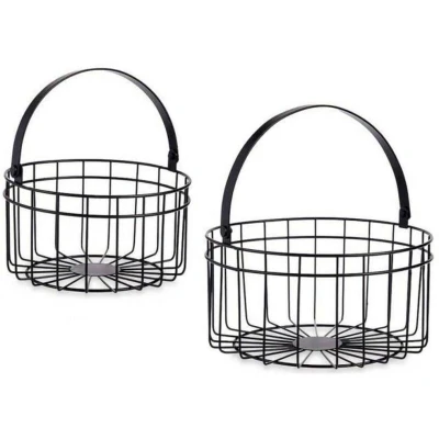 This set of 2 round black metal baskets measures 25 cm wide and 27 cm deep. Elegant and trendy, they are perfect for organizing your items. Their sturdy construction ensures durability and resilience, while adding a modern touch to your interior.