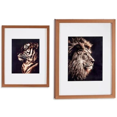 Discover this decorative frame in the shape of a tiger and a lion, made of bronze glass and plywood. With dimensions of 33 x 3 x 43 cm, it will showcase your photos or artwork in an original and elegant way. Its exotic design and unique patterns will add a touch of originality to your interior.