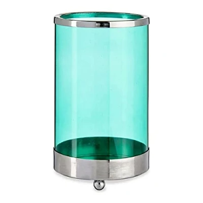 ManoManoThis cylindrical candle holder made of metal and glass, in silver and blue tones, adds an elegant touch to your interior. Compact (9.7 x 16.5 x 9.7 cm), it is perfect for holding a standard candle and enhancing any room.