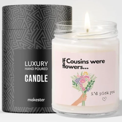 Gift for Cousin Luxury Soy Wax Vanilla, Jasmine, Sugared Almond Woman Female Makester