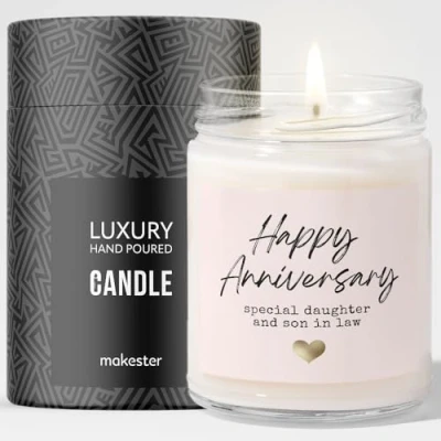 Gift for Daughter and Son in Law Anniversary Luxury Soy Wax Vanilla, Jasmine, Sugared Almond Makester