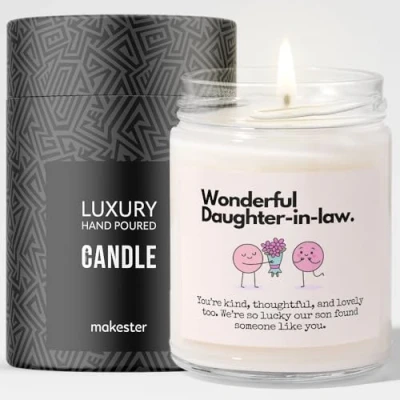 Gift for Daughter in Law Luxury Soy Wax Birthday Present Vanilla, Jasmine, Sugared Almond Makester