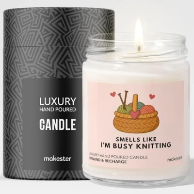 Gift for Knitters Luxury Soy Wax Vanilla, Jasmine, Sugared Almond Makester