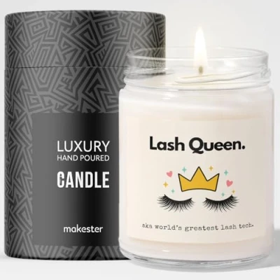 Lash Queen. Aka world's greatest lash tech. Quality Over Everything - We've scoured every nook, cranny, and soybean field to get the top-shelf stuff for our candle - the kind of wax and essential oils that would make a candle connoisseur weep with joy. Fresh Fragrance - A captivating aroma made from natural essential oils and a blend of sugared almond, vanilla, and white musk. It's (probably) the best-smelling candle in the world. Great Size, Unforgettable Glow - 220g of high-quality soy wax ensures that this candle will keep on going and going. Enjoy over 40+ hours of uninterrupted candle pleasure.
