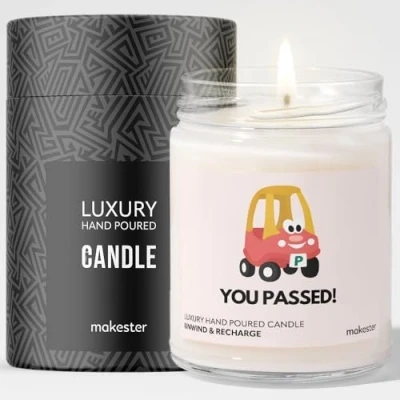 Gift for Passing Driving Test Luxury Soy Wax Vanilla, Jasmine, Sugared Almond Congratulations New Driver Your Makester