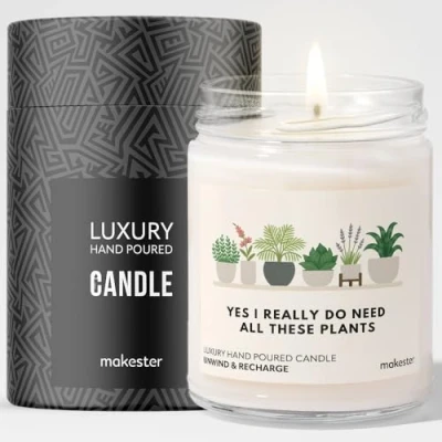 Gift for Plant Lover Luxury Soy Wax Vanilla, Jasmine, Sugared Almond Makester