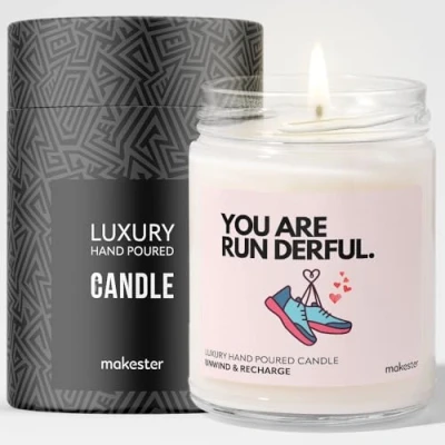 Gift for Running A Marathon Soy Wax Vanilla, Jasmine, Sugared Almond Makester