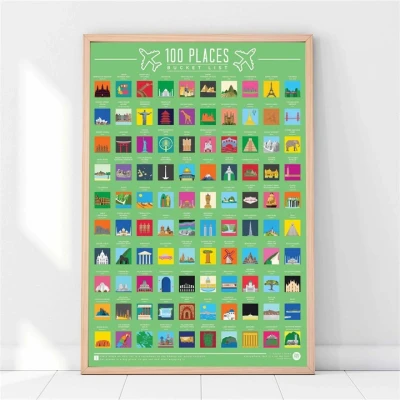 Gift Republic GR630001 100 Places Scratch Off Bucket List Poster, Paper, Green,42 x 59.4 0.02 cm, Living Room
